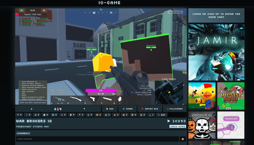Community and Social Features Engage with other players through comments, in-game chat, and emoji reactions. io game fosters a vibrant community where you can share your gaming experiences and connect with fellow FPS fans. The social features encourage interaction and make the gaming experience more enjoyable and rewarding. The active community ensures that there is always someone to play with, making the gaming experience more fun and social.